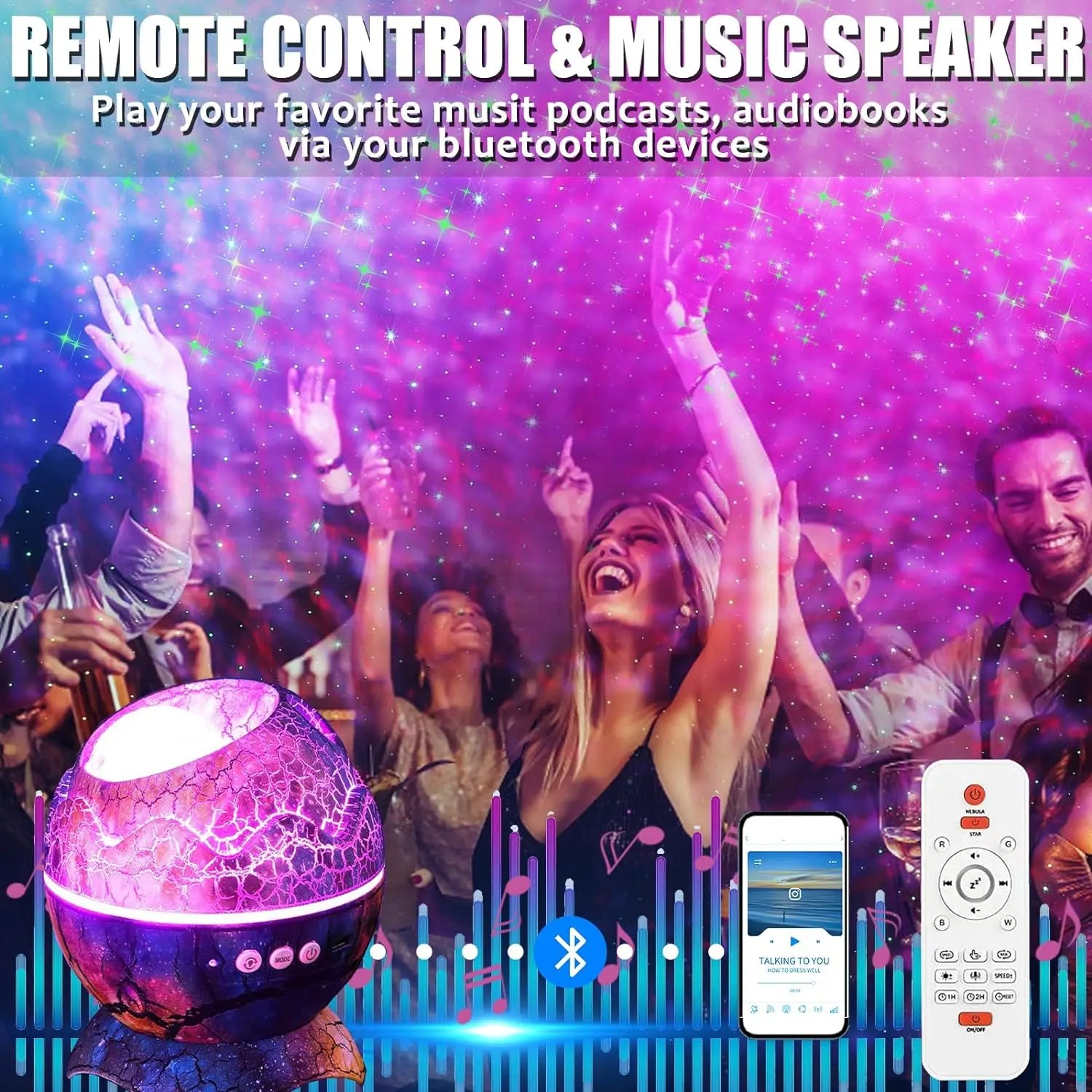 Bring the magic of the galaxy into your home! This Dinosaur Egg Galaxy Projector transforms any room into a breathtaking starry night with 14 nebula color options, adjustable brightness, and dynamic flow effects. Perfect for both kids and adults, it doubles as a Bluetooth speaker, syncing lights to music for an immersive experience. With a built-in white noise machine featuring 19 soothing sounds, it’s designed to create a calming atmosphere for better sleep. The timer function and removable egg shell cover let you switch between a dazzling galaxy and a soft night light. Whether for relaxation, parties, or bedtime, this projector makes the perfect gift and decorative piece for any space!